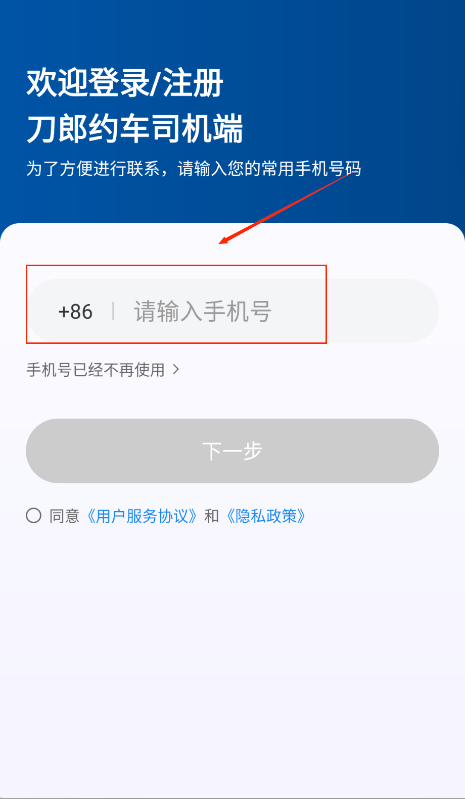 2、登录时输入常用手机号就行啦,如果号码不用了可以点击提示更换,别忘了勾选同意协议选项才能点下一步按钮呢。