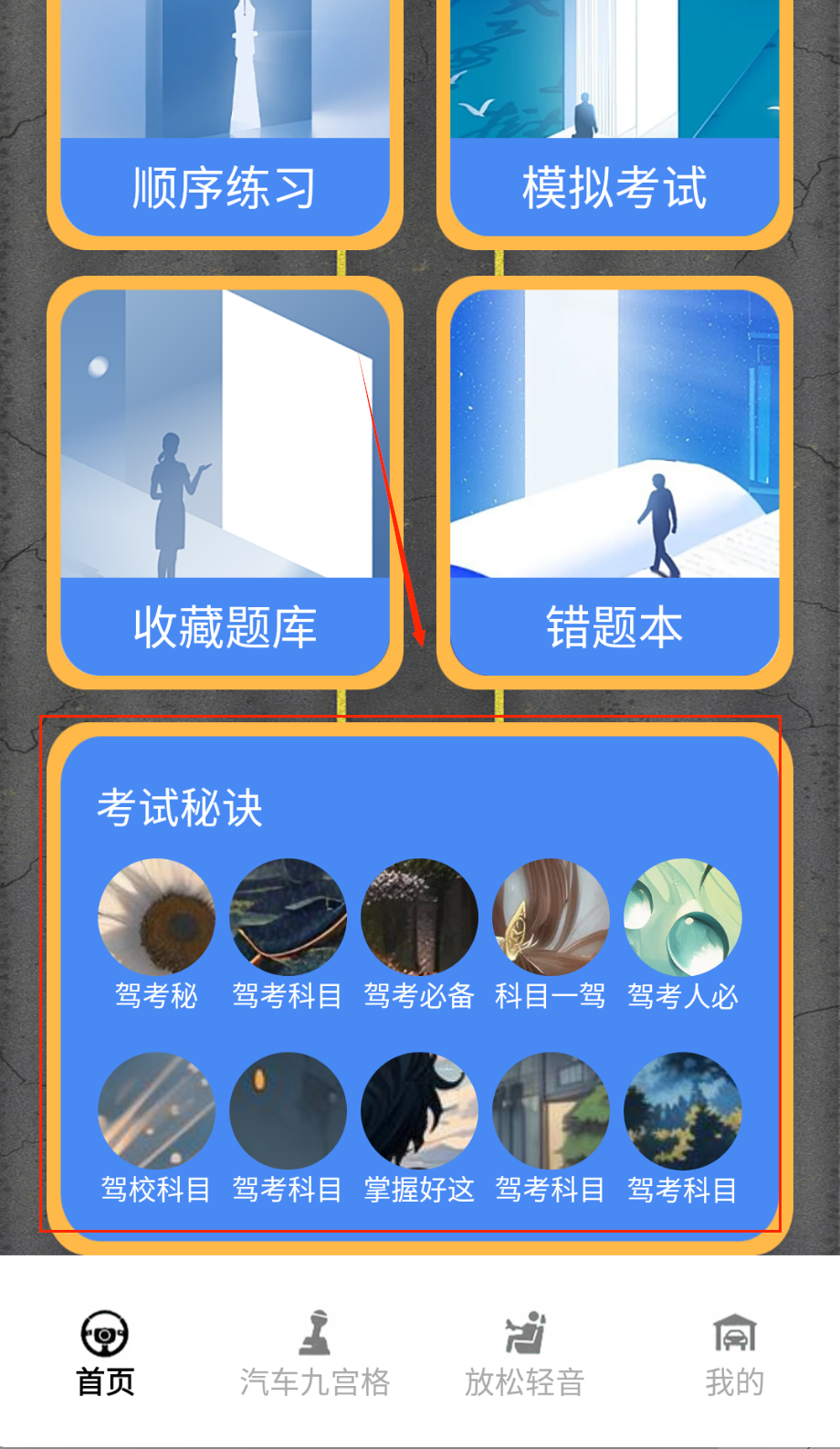 1、题库管理:支持关键词精准检索和按交通法规、标志识别等知识点标签筛选试题,可快速定位目标题目,收藏高频考点和易错题。