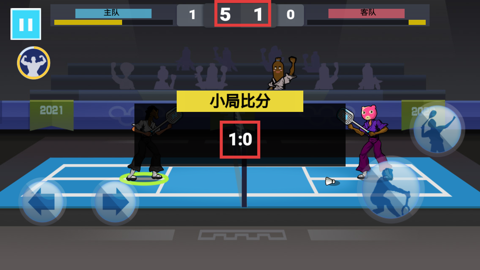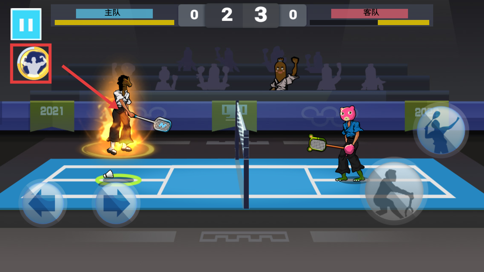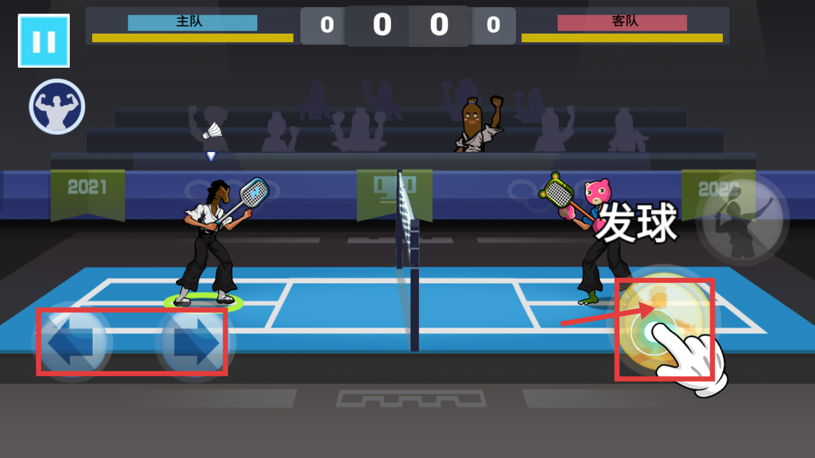 2、对战中通过【左侧摇杆】移动角色,点击【右侧发球键】发起进攻,把控击球节奏。