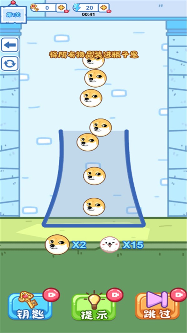 2、在这款游戏里玩家要设法装满瓶子里指定的所有狗头才能成功。