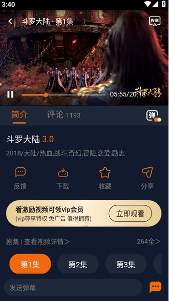 4、下图就是开始播放斗罗大陆了,操作还是非常的简单,基本热门动漫都能搜索到。