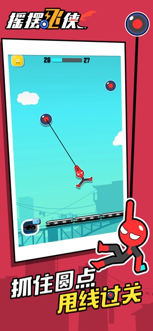 《摇摆飞侠》这款游戏内玩家能够去尽情挑战,你在这里会完成很多冒险玩法,里面的挑战都是很多,每一关都很有难度。玩家要去抓住里面的圆点,然后去左右摇晃将自己甩过去,操作是很有趣的。不同关卡会有不同难度,游戏还有其他的角色给你玩。