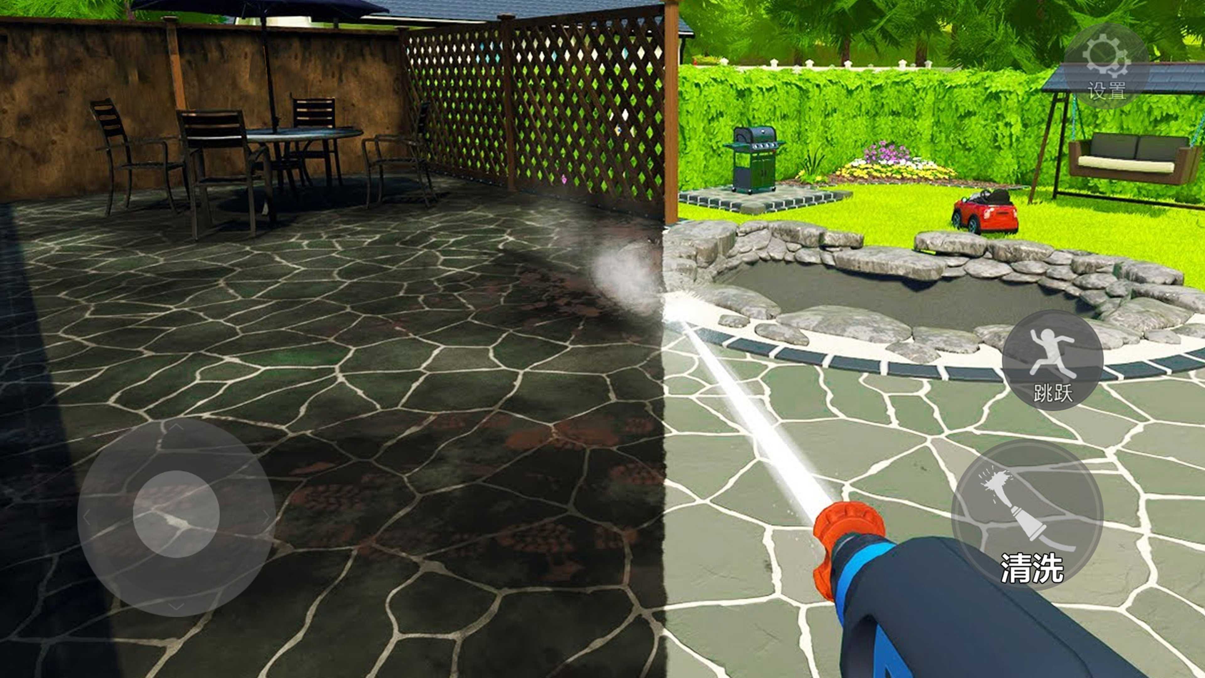 1、清洗一切的操作非常简单,水枪在物体上造成的水花会非常立体地展现在游戏中。