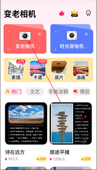 1、下载后打开app,点击变老相机
