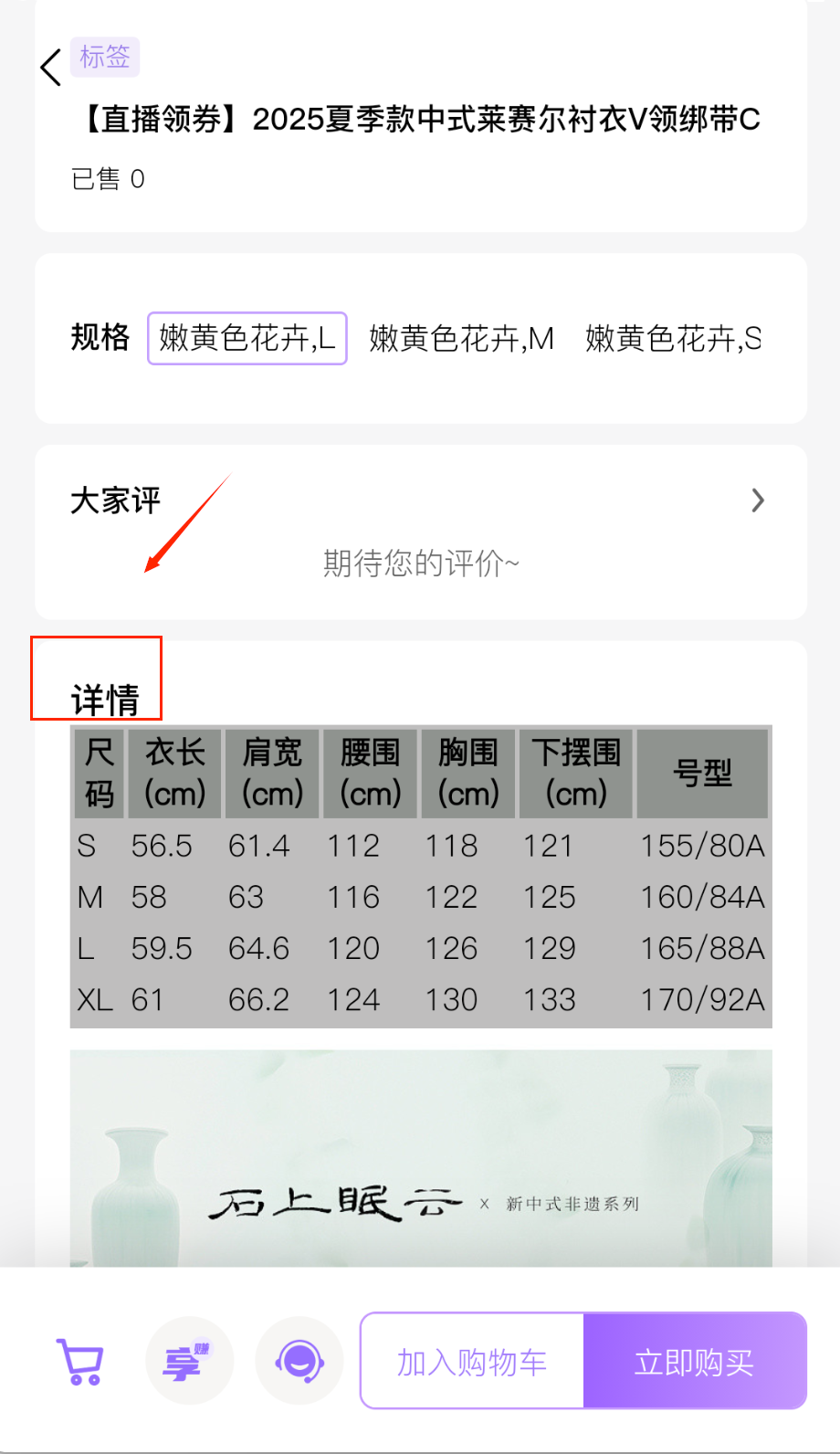 2、进入商品详情页查看具体参数和用户评价,选择规格后加入购物车或直接购买,结算时可以使用积分和优惠券抵扣。