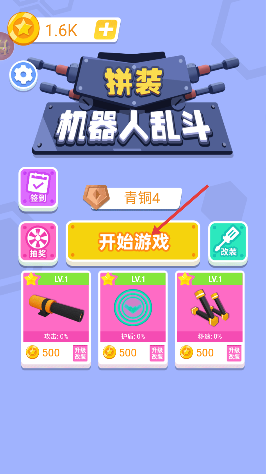 1、青铜4段位时点击【开始游戏】,可先通过【签到-抽奖】领福利,储备开局资源。