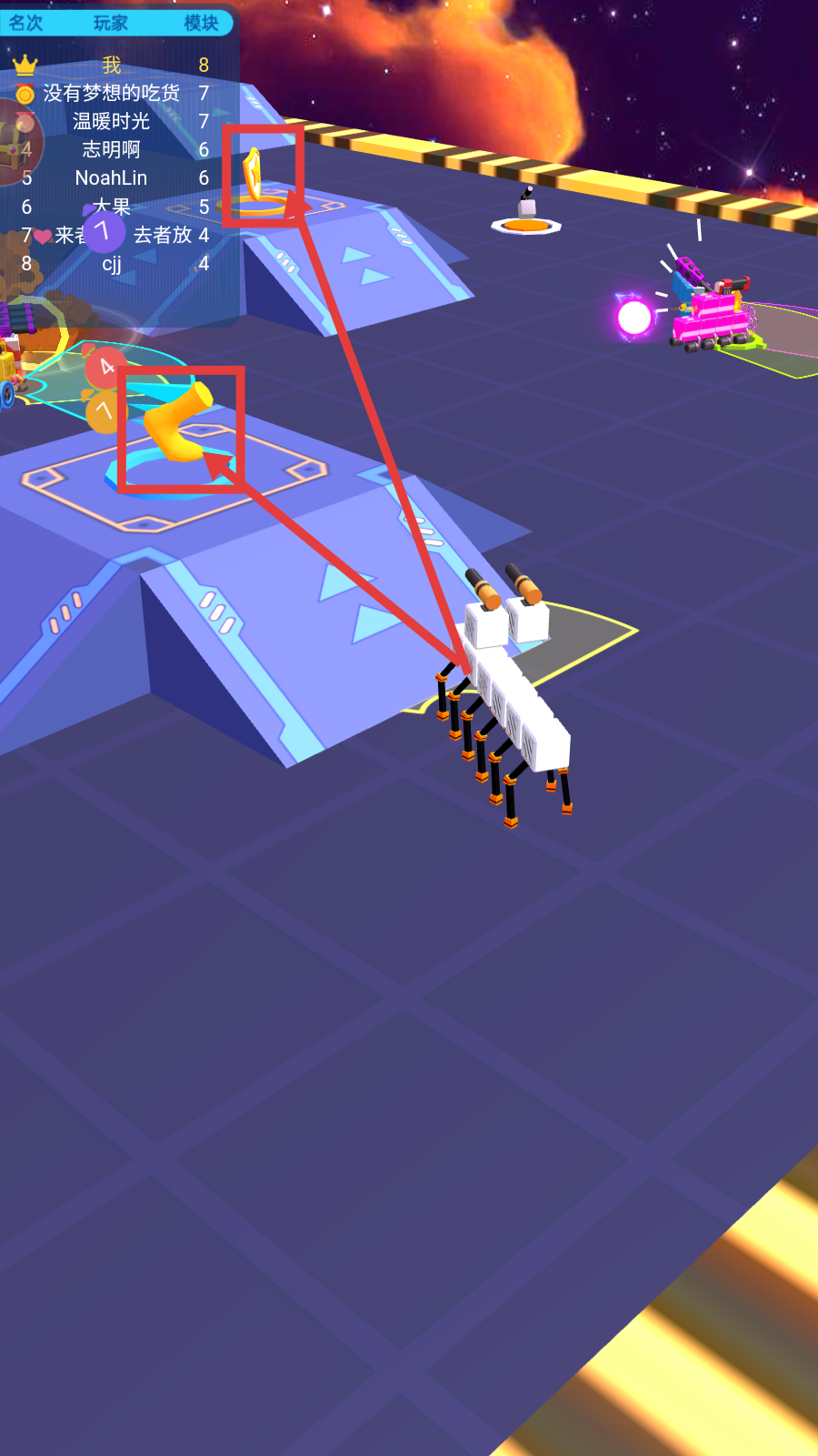 3、战斗中瞄准【黄色部件-金色道具】收集,扩充机甲模块,强化属性,压制对手。
