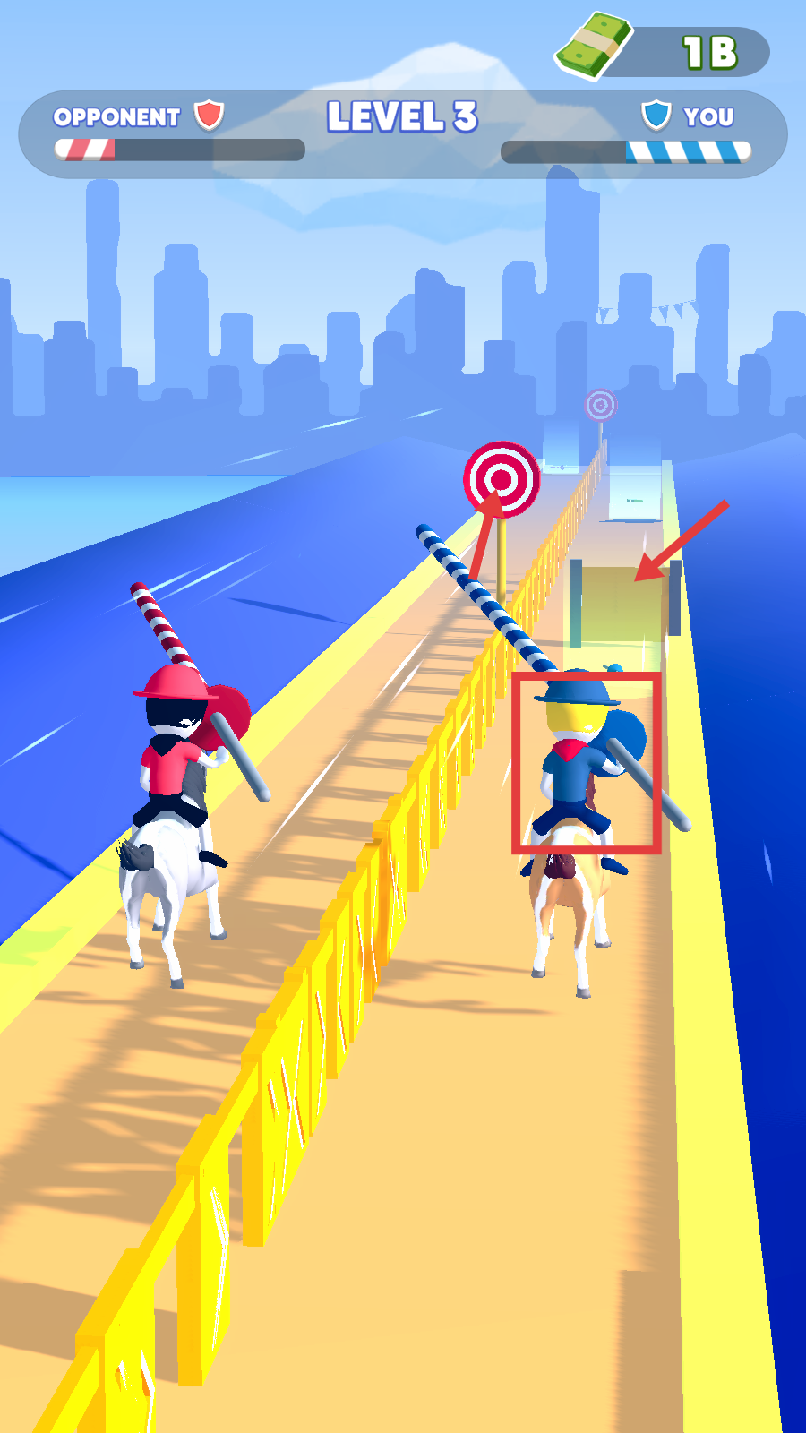 骑士角逐挑战是一款运用Q版美术风格的骑手比武较量娱乐游戏,指挥人物策马执矛展开刺激比拼。借助横向划动界面改变矛头方位袭击敌手,便捷明了的控制方式迅速适应立即领会比试准则。搜集各式外形的兵刃强化作战实力,无限模式安排逐步增加考验强度检测动作准确度。每回战胜敌方可获取货币奖赏开启稀有道具,明快简约的视觉表现搭配悠扬环境旋律打造休闲环境。人物接触回馈特效逼真还原紧张对抗环节,复古风情场地搭建专属比武平台彰显骑士荣耀。