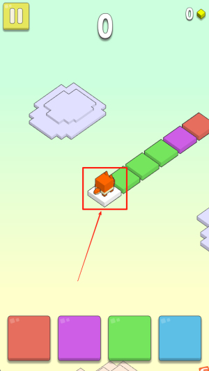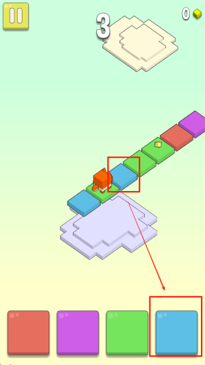 2、搭建路径:在游戏过程中,拖动不同颜色的方块,为角色搭建通往云朵的路径。