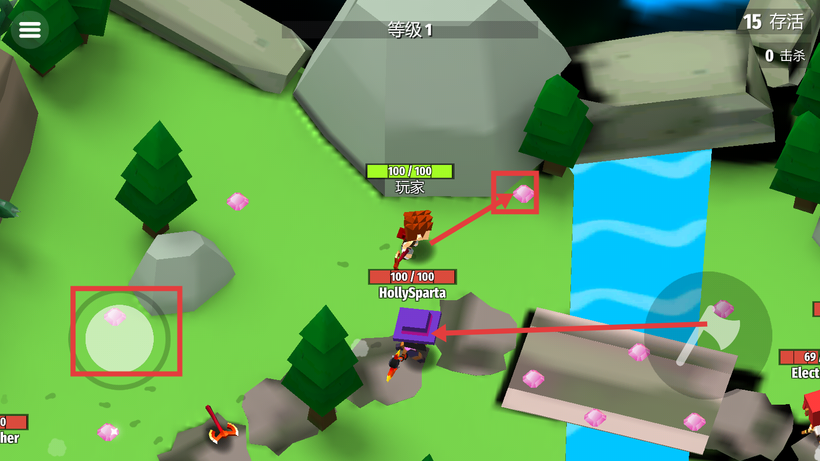 2、挑战中滑动屏幕移动,优先采集【粉色水晶】与【紫色宝箱】,快速积累资源提升实力。