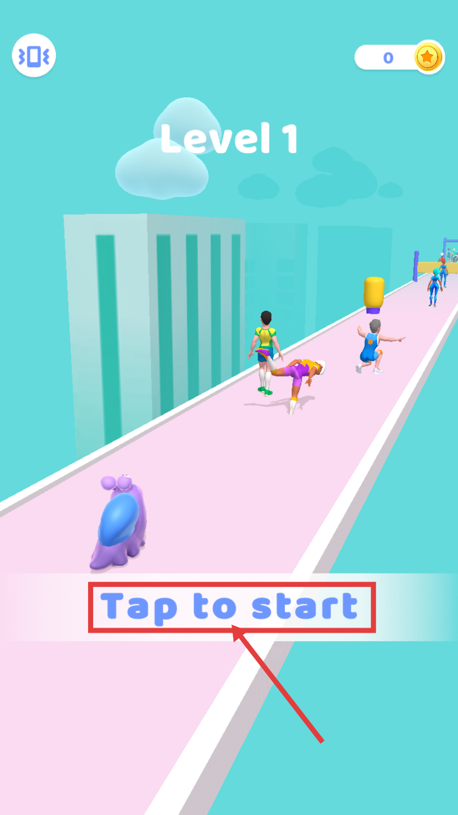 1、Level1阶段点击【Taptostart】,快速进入跑酷节奏,观察初始赛道布局。