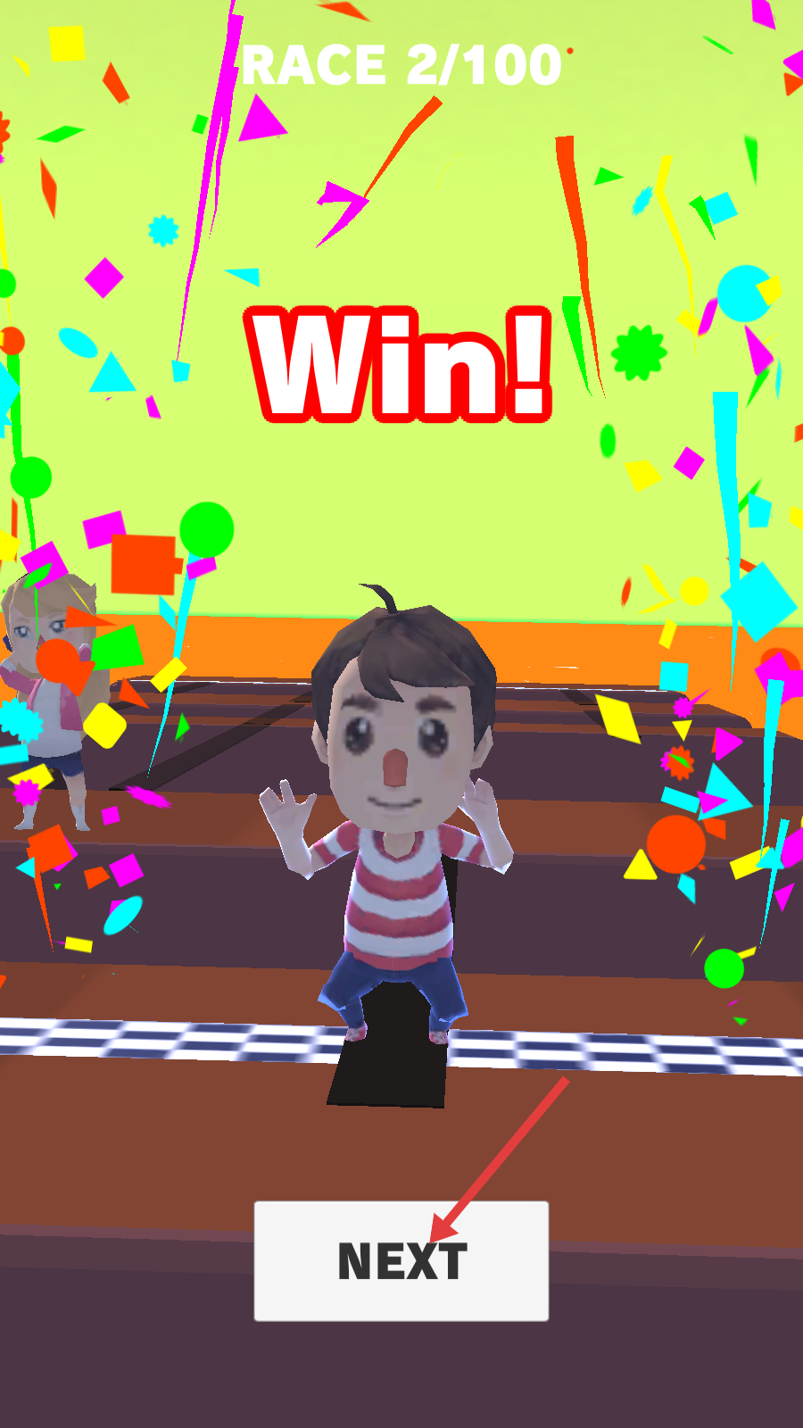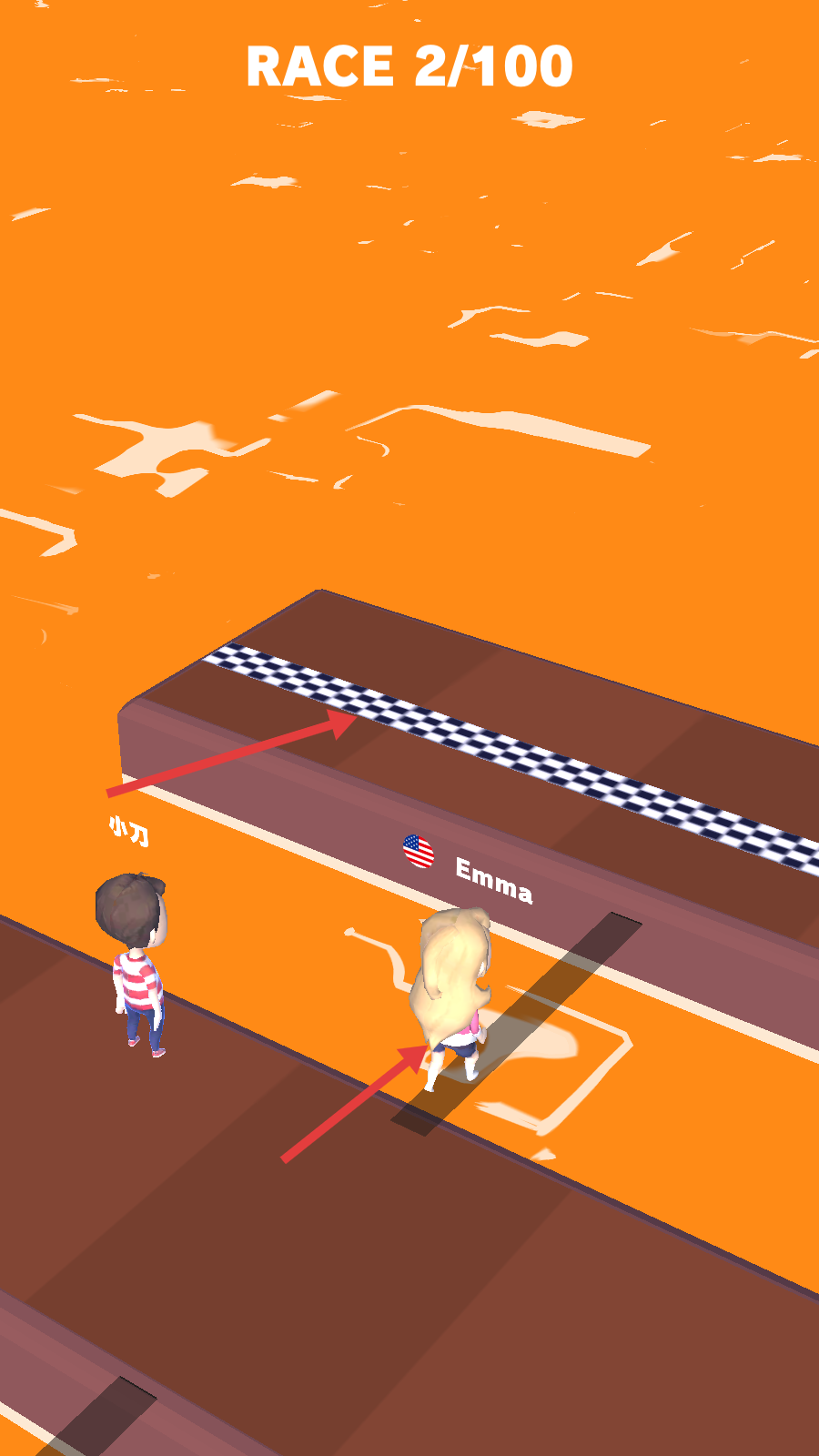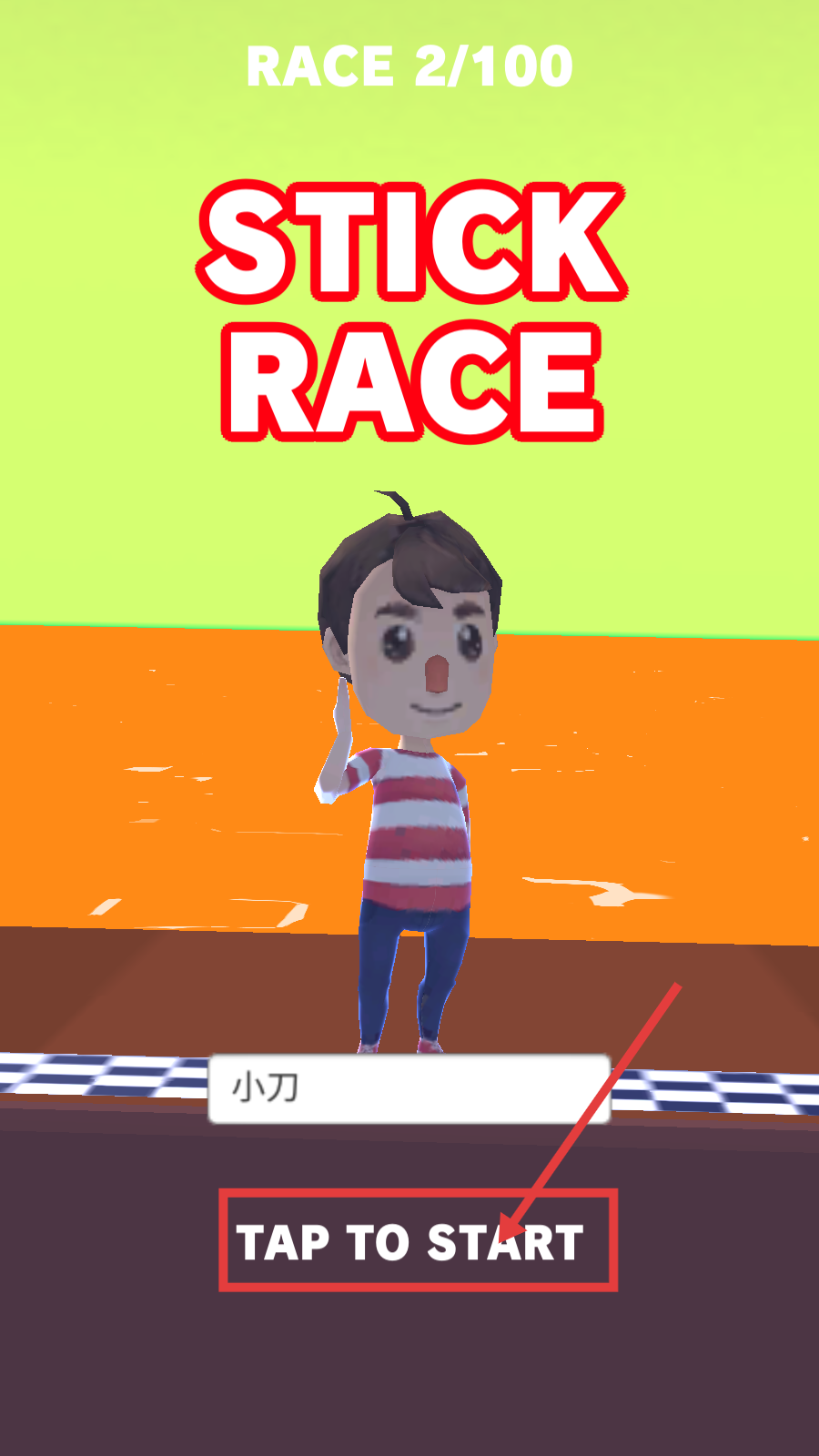 1、在【RACE2/100】界面,点击【TAPTOSTART】,开启比赛,操控角色“小刀”参赛。