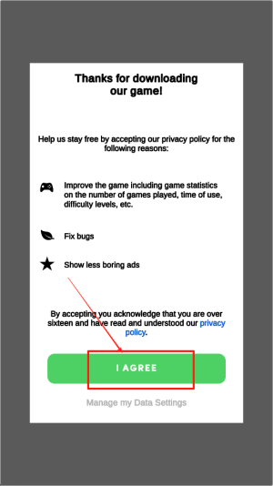 1、接受隐私政策:在游戏启动界面,阅读并点击“I AGREE”以接受隐私政策并开始游戏。