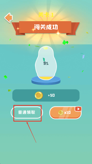 4、领取奖励:完成关卡后,点击“普通领取”按钮,获取奖励并继续游戏。