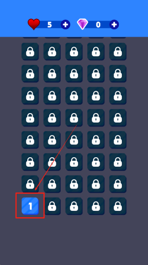 2、选择关卡:在关卡选择界面,点击数字“1”选择第一关开始游戏。