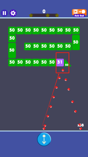 2、瞄准发射小球:通过发射小球撞击砖块,调整角度与力度确保精准命中,利用反弹扩大粉碎范围,推进关卡进度。