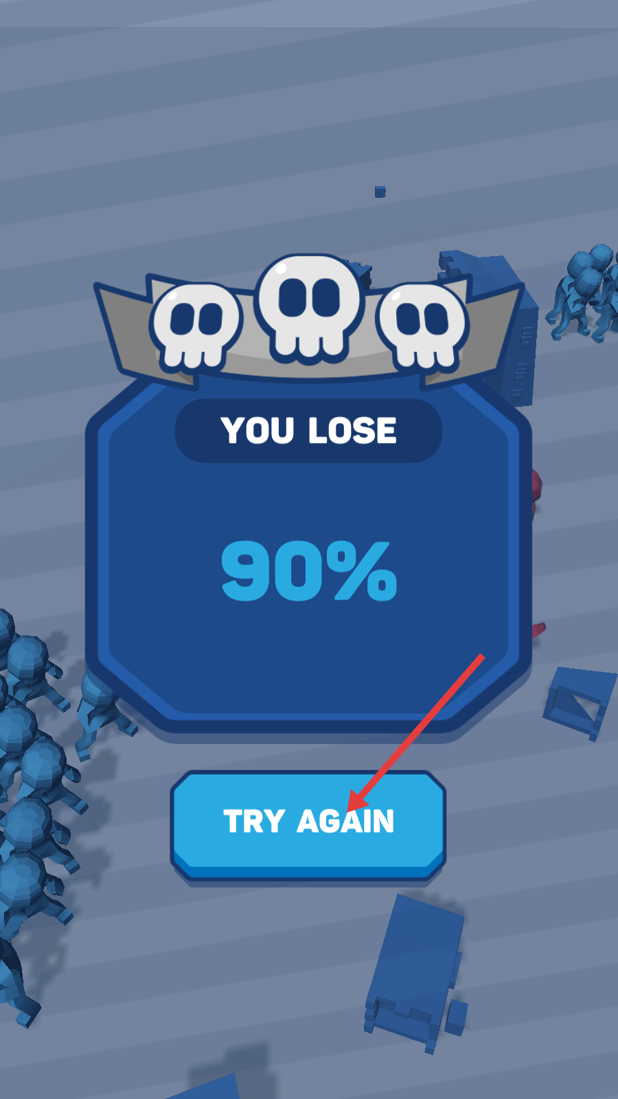 4、若出现【YOU-LOSE】,点击【TRY-AGAIN】重试,调整兵种搭配或出战时机,挑战胜利。
