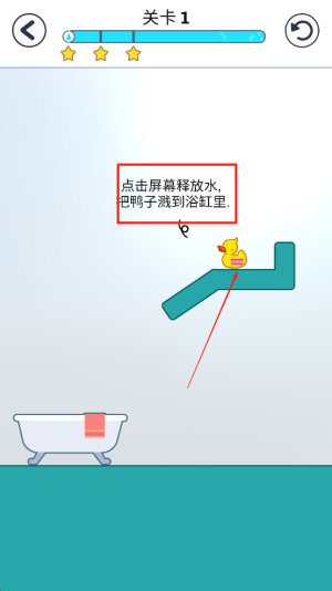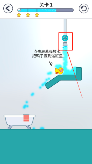 2、操作鸭子:在关卡中,点击屏幕释放水,将鸭子淋到浴缸里。