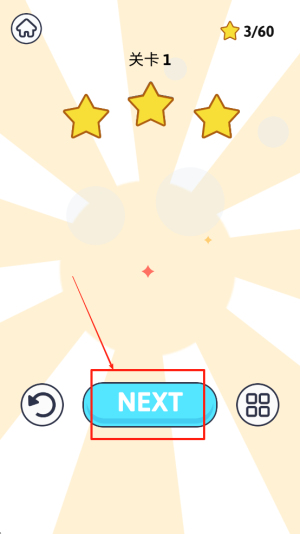 4、进入下一关:关卡完成后,点击“NEXT”按钮,进入下一关继续游戏。