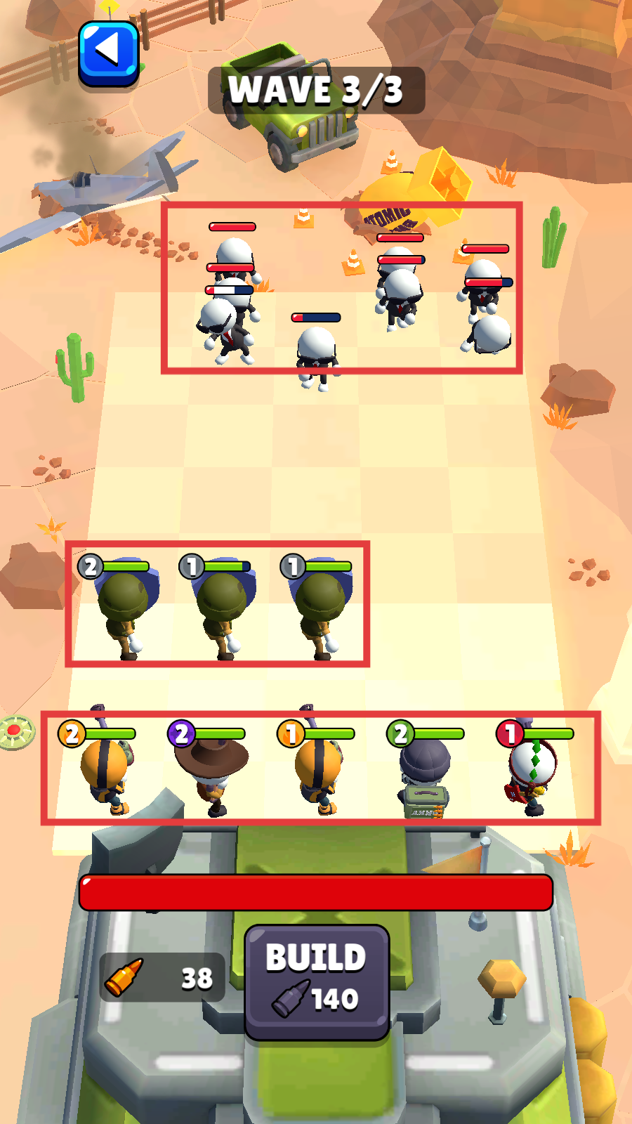 3、多波次战斗(WAVE3/3)中,分层部署单位构建防线(前排抗伤 后排输出),持续补充战力,抵御密集敌人进攻。