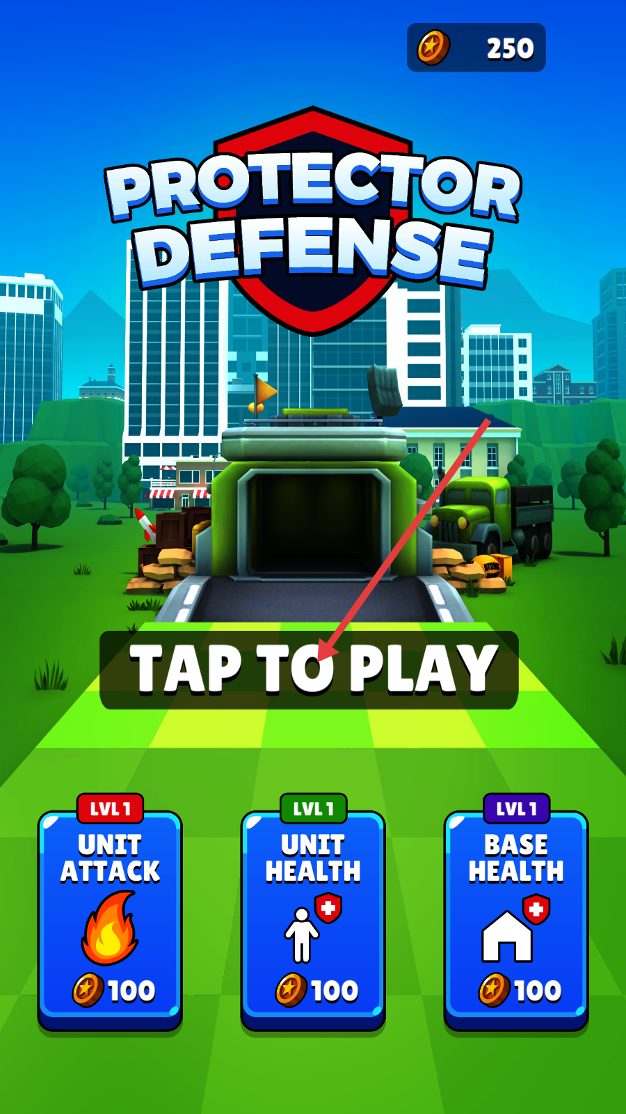 1、点击【TAPTOPLAY】开局,初始持有【金币-250】,可消耗100金币升级基础属性,强化战力后进入战斗。