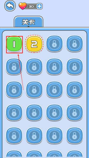2、选择关卡:在关卡选择界面,点击数字“1”或“2”选择你想要挑战的关卡。