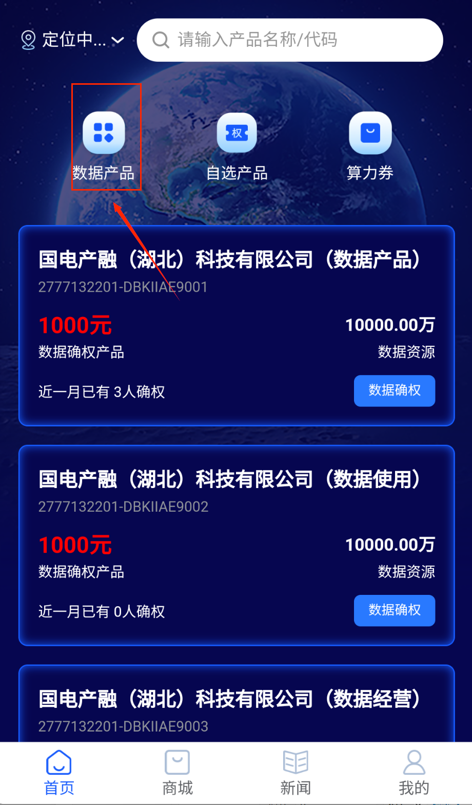 2、在数据产品中心页面,用户可以通过分类浏览或关键词搜索查找各类数字资源,每项产品都配有详细说明和使用权限。