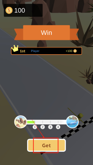 4、赢得胜利:当您成功到达终点并赢得比赛时,点击“Get”按钮领取您的奖励。