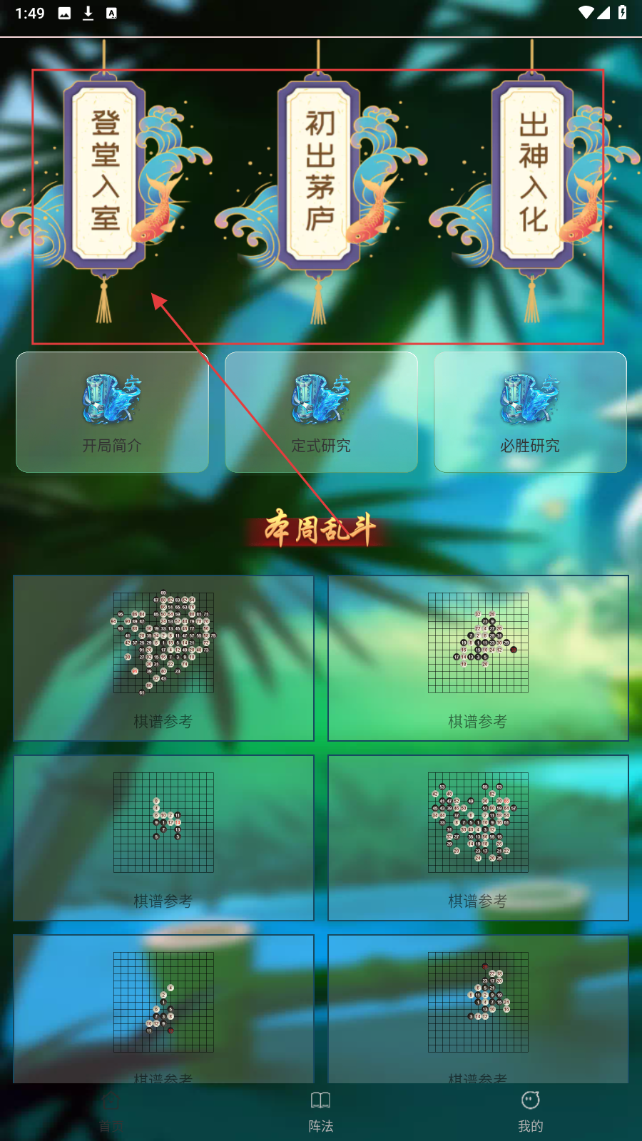 1、进入界面,选【登堂入室】,开启五子棋进阶知识学习,熟悉模式内容。