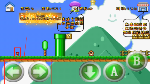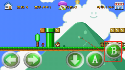 4、开始冒险:使用屏幕上的控制按钮移动马里奥,按B键跳跃,开始您的冒险旅程。