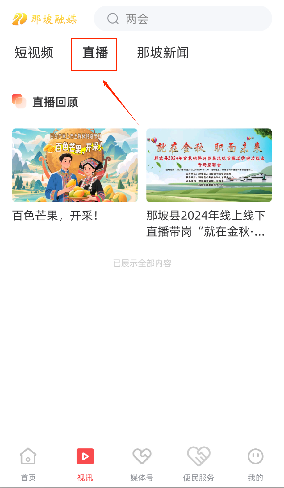 2、在直播专区观看重要会议和活动的实时直播,参与弹幕互动发表观点,错过直播可回看精彩片段和完整录像。