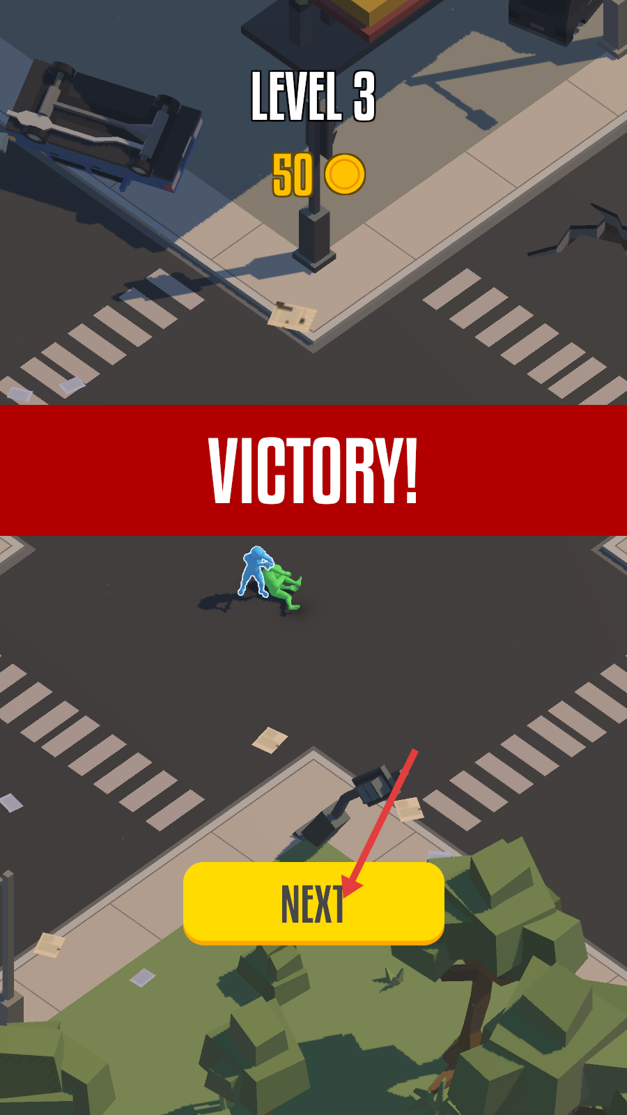 4、胜利后获【50金币】,点击【NEXT】进入Level3,延续策略推进关卡。
