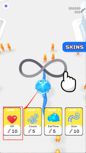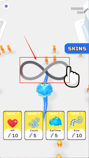 3、更换触手皮肤:根据喜好更换触手皮肤,解锁新皮肤装扮章鱼,在对战中展现个性外观,享受装扮与成长的双重乐趣。