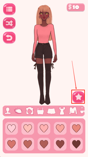 4、保存与分享:完成搭配后,点击星星按钮保存你的设计,然后可以选择分享你的作品。
