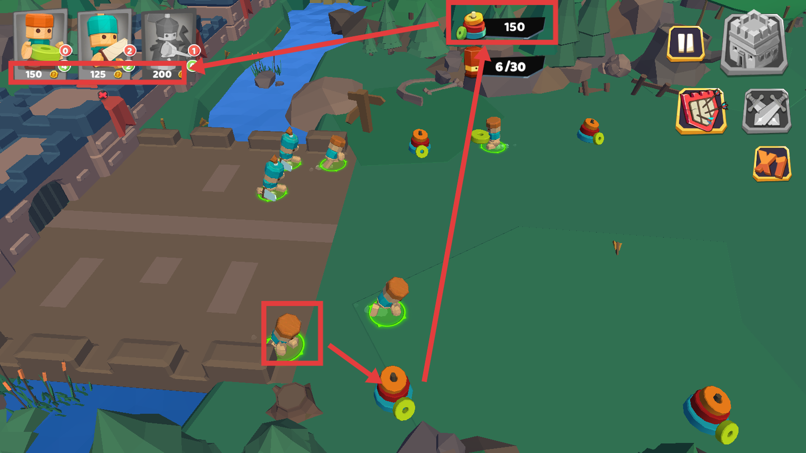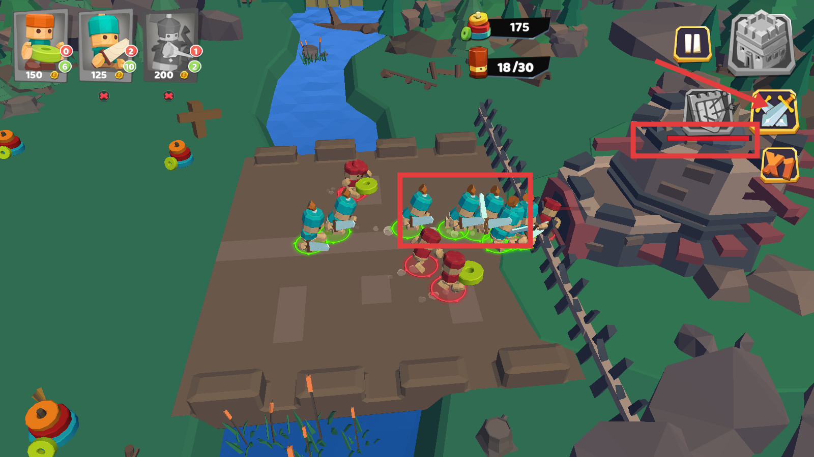 2、战斗中指挥红框兵种采集【150-资源】,积累部署兵力的物资。