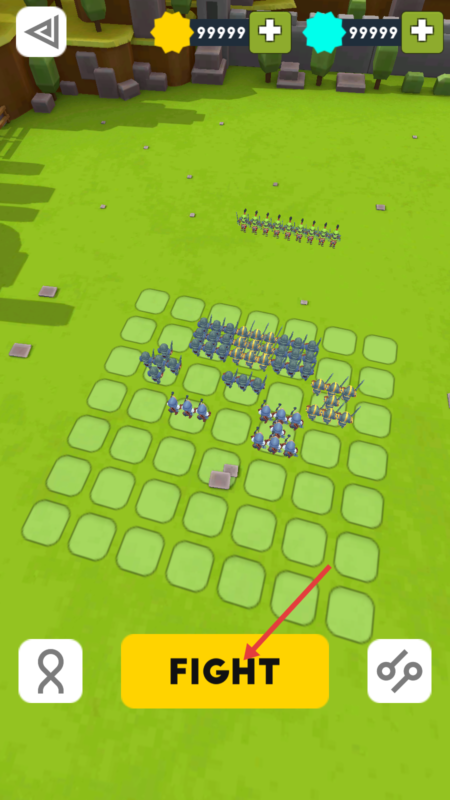 2、兵种部署完成后,点击底部黄色【FIGHT】按钮开启战斗,同步观察战场局势。