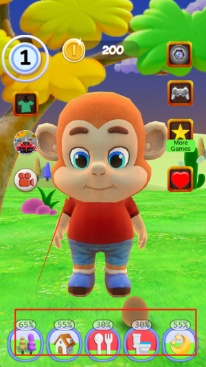 4、反馈即时暖心:照顾行为与对话都能获得即时反馈,猴子的反应暖心又有趣,反馈机制强化互动动力,提升游玩粘性。