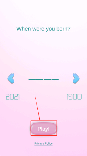 1、选择出生年份,调整滑块选择你的出生年份后点击“Play!”开始游戏。