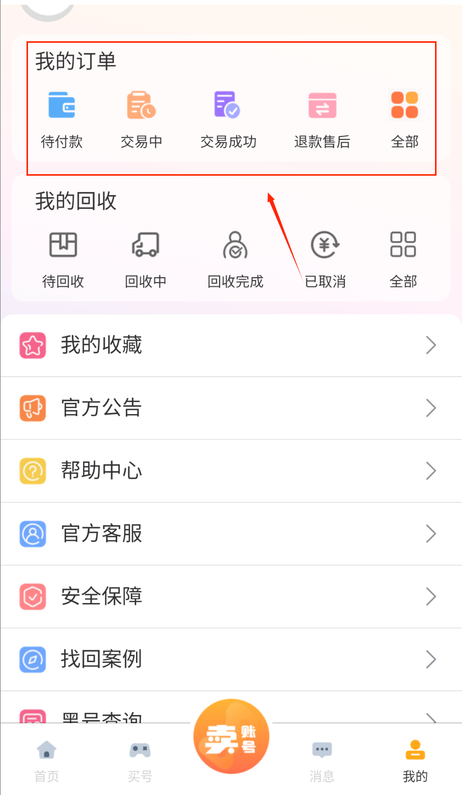 4、通过订单管理查看历史交易记录,对已售出或购买的账号申请售后服务,可以享受平台提供的永久包赔保障。
