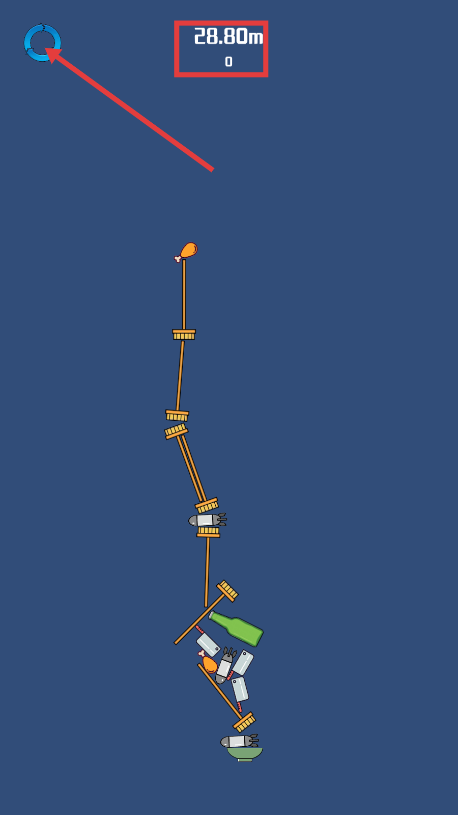 4、达成【28.80m】后,若需重玩,点击左上角【重置图标】,优化策略再挑战。
