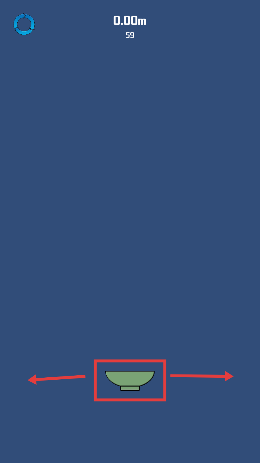 1、开局聚焦【绿色碗】,借其承接掉落物,关注【0.00m】距离与计数,开启收集第一步。