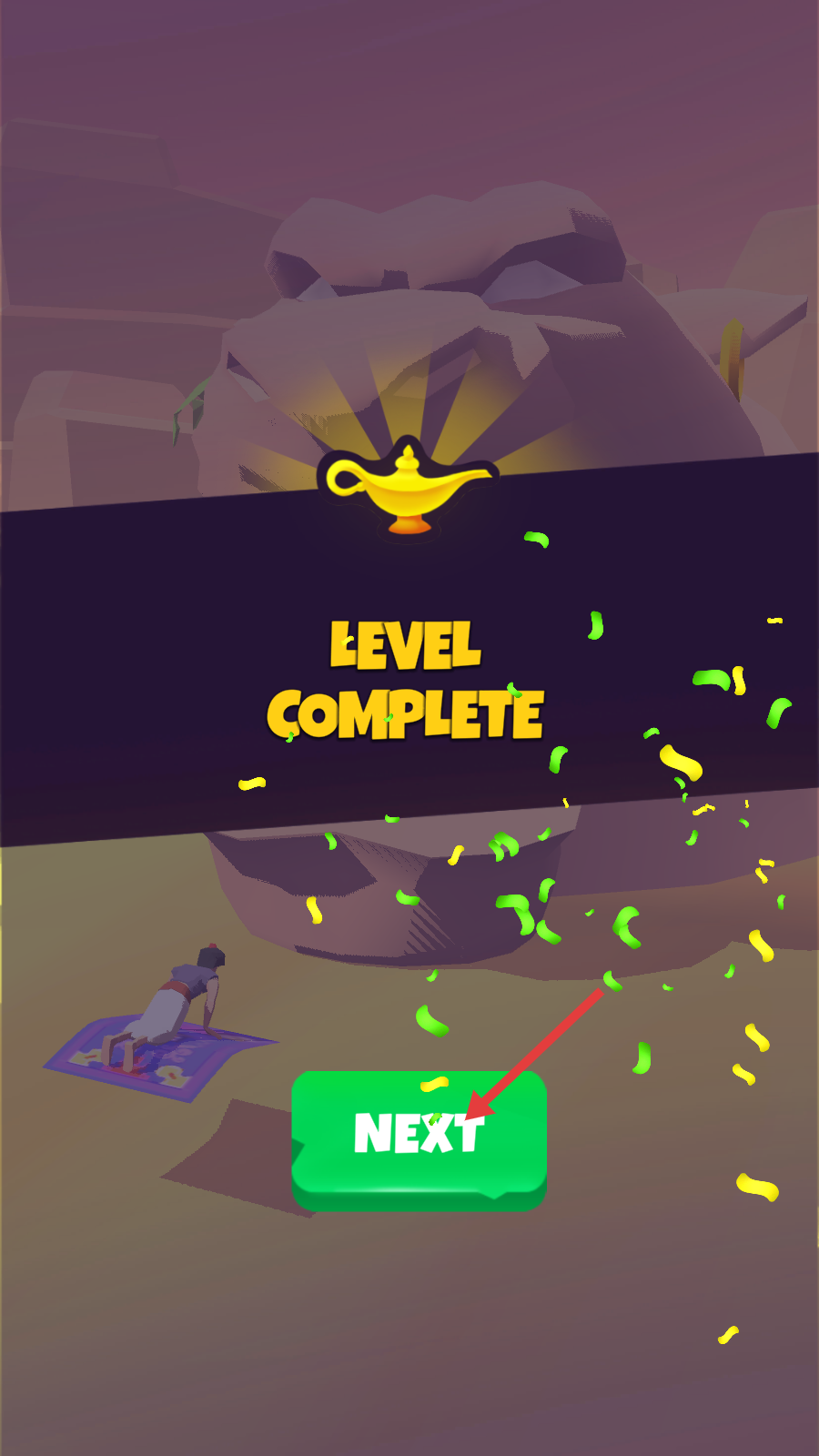 4、关卡完成后,点击绿色【NEXT】按钮,领取奖励并进入下一关,挑战更复杂沙漠场景。