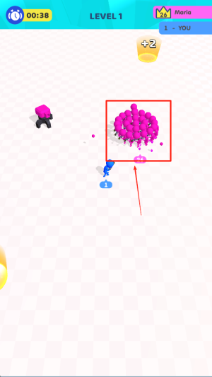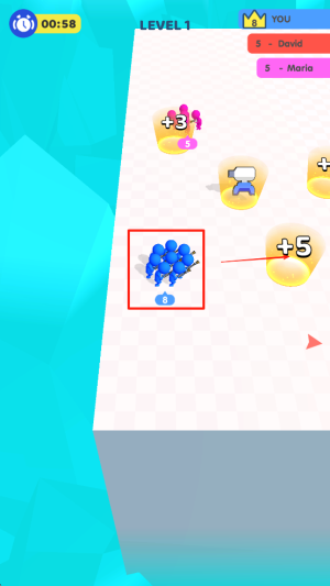 2、收集壮大团队:在场景中收集不同人员,吃到增加数字的人物提升团队规模,积累人数优势,为对战碾压对手做准备。