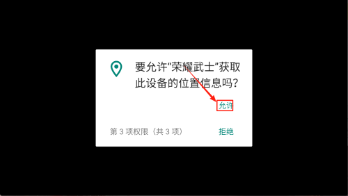 2、授权定位:当弹出“要充许‘荣耀武士’获取此设备的位置信息吗?”时,点击“充许”继续。