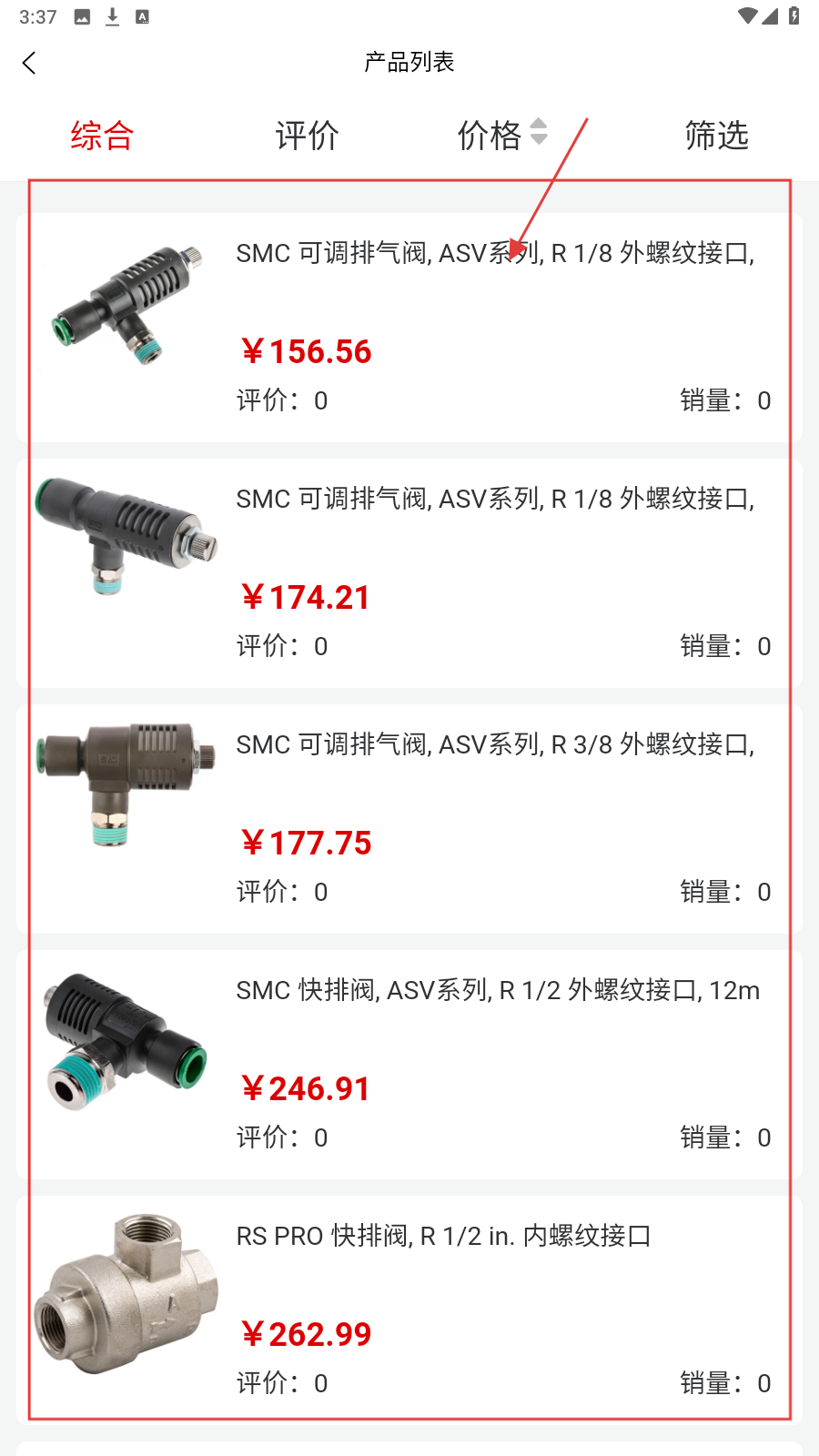 3、进入产品列表,对比SMC可调排气阀等商品的价格、参数,筛选心仪品。