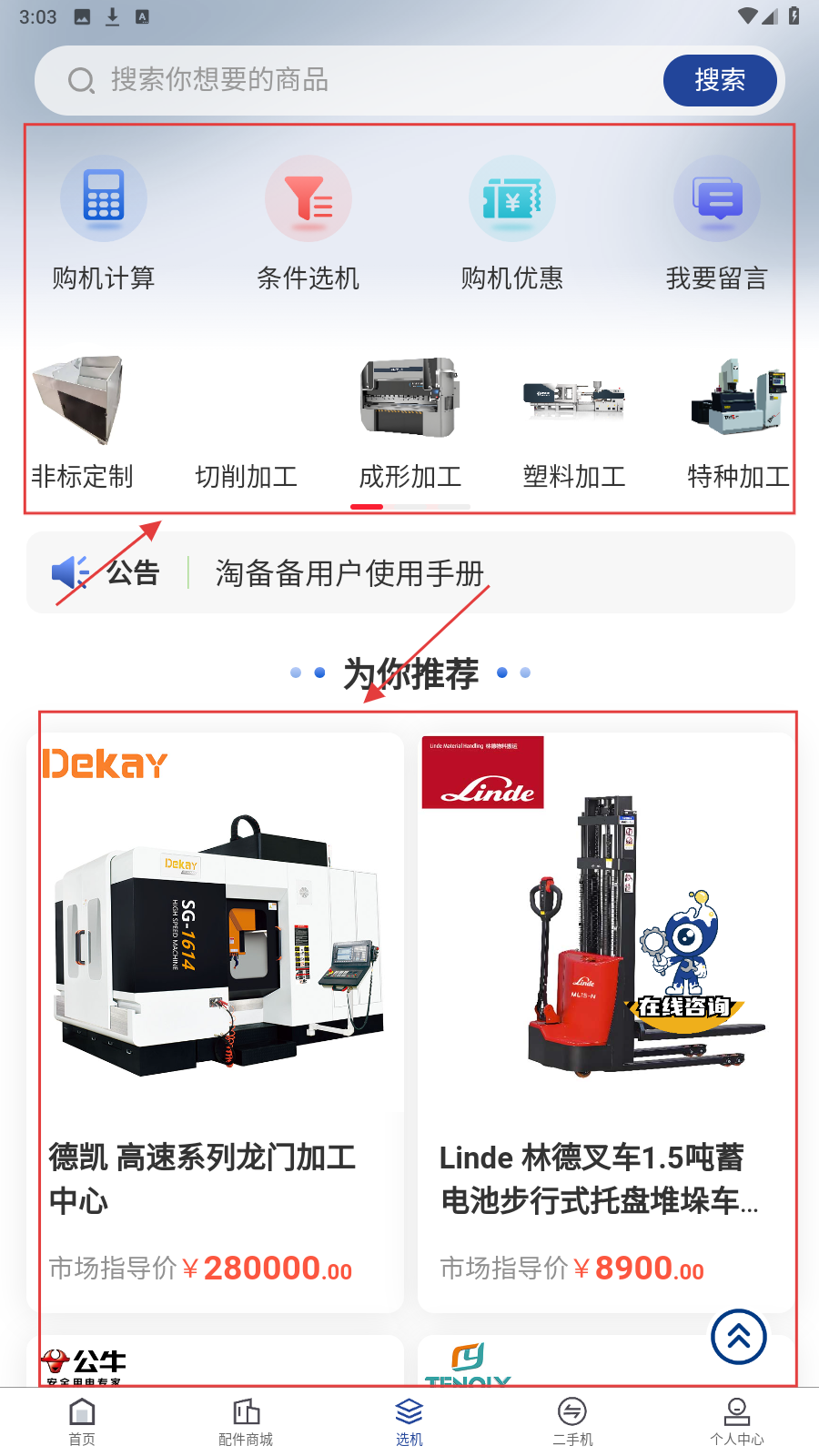 淘备备是一款聚焦工业设备流通的专业平台软件,整合了大量优质的机械资源,供用户在线进行设备买卖往来。平台展示详尽的设备参数与状况说明,便于全面了解性能细节,通过精准搜索与筛选功能快速定位目标设备。同时设有优惠券领取中心与价格补贴活动,支持设备估值、合作方匹配及交易安全保障,助力用户降低成本,高效完成设备流转。
