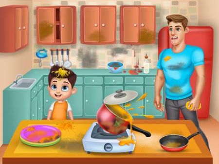3、在这款游戏中,所有的家务都要和爸爸一起做。游戏中的角色很可爱,做家务的过程也很有趣。