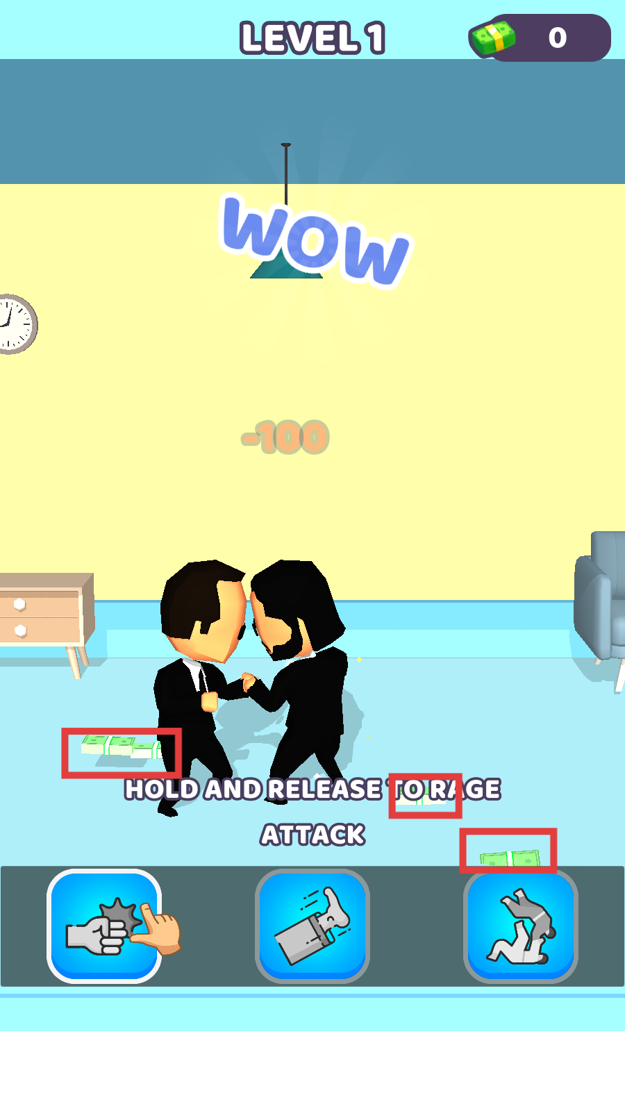 3、激战中收集地面【金钱】,触发【RAGE-ATTACK】前积攒怒气,兼顾输出与资源获取。