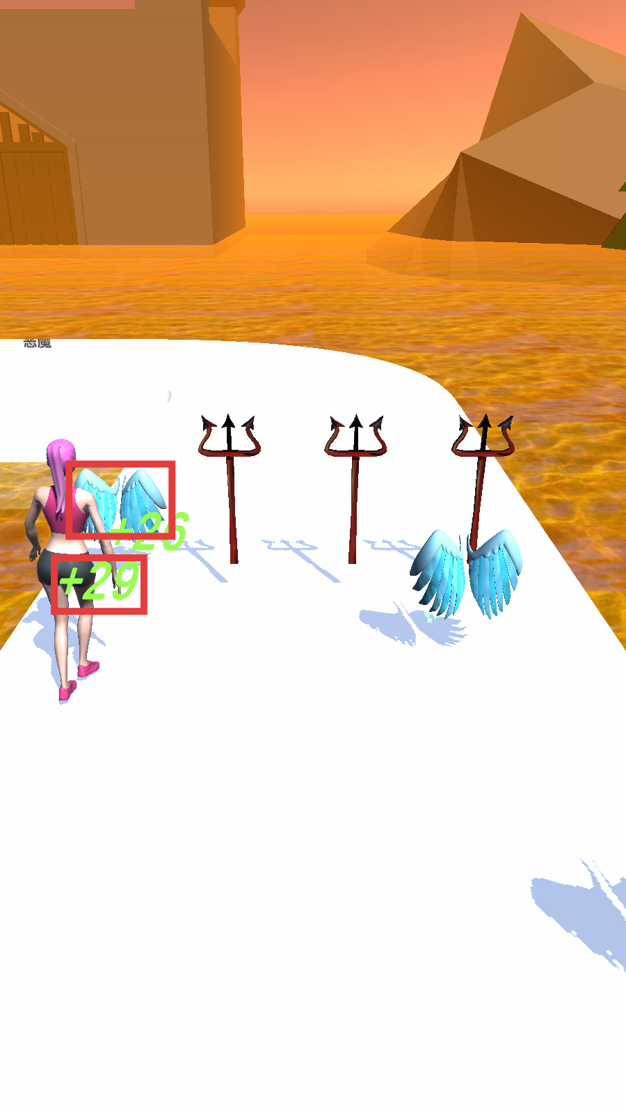 2、奔跑时优先拾取【蓝色翅膀- 29】,规避【恶魔三叉戟】障碍,积累天使阵营属性。