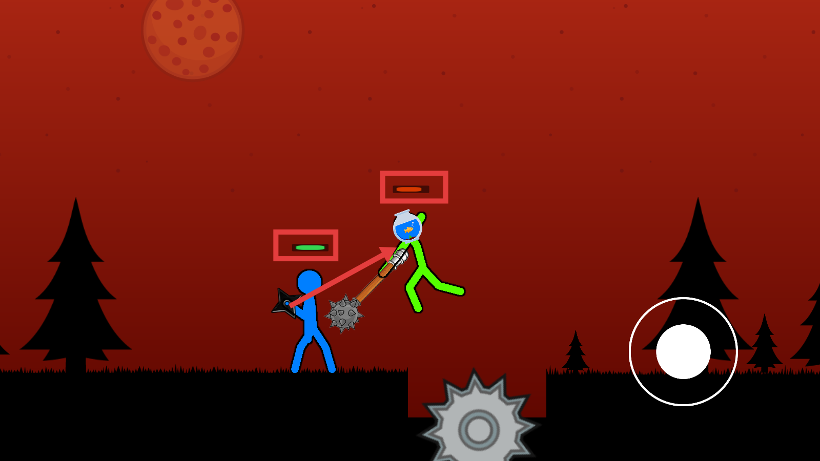 2、进入红色场景,点击右侧【攻击键】,用飞镖袭敌,同时规避地面【齿轮】陷阱保生存。